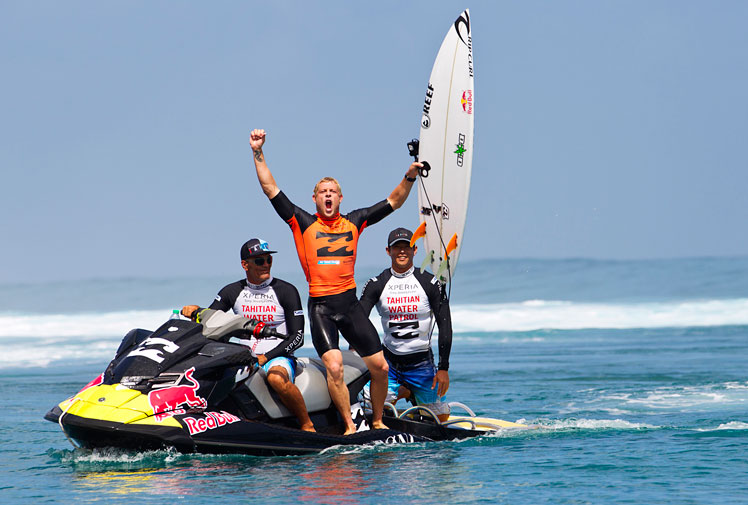 of classic 4-6 ft surf at Teahupoo which was warmly greeted by competitors. The